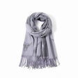 Sky Blue Cashmere Blend Reversible Highland Cow With Bow scarf is backordered and will ship as soon as it is back in stock.