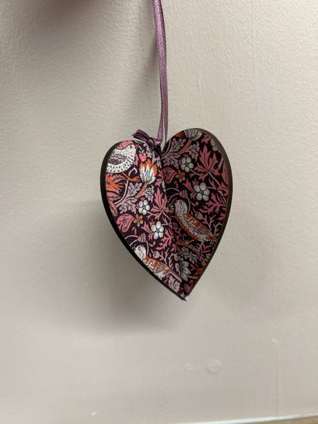 3D Heart Christmas Decoration in Liberty Pink Strawberry Thief