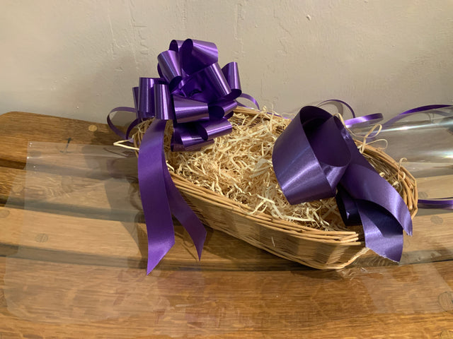 12’ long wicker, quality basket. Includes bow, ribbon, clear wrap and wood wool filler. Save £7.50 when spending £30 on food products. Discount applied at Checkout. Fully Reusable and aesthetically pleasing.