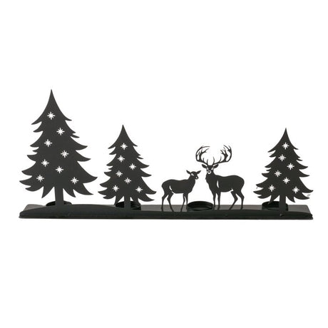 Stags In The Forest “Walden” Black Iron Tealight Holder (25cm long, 8cm wide)