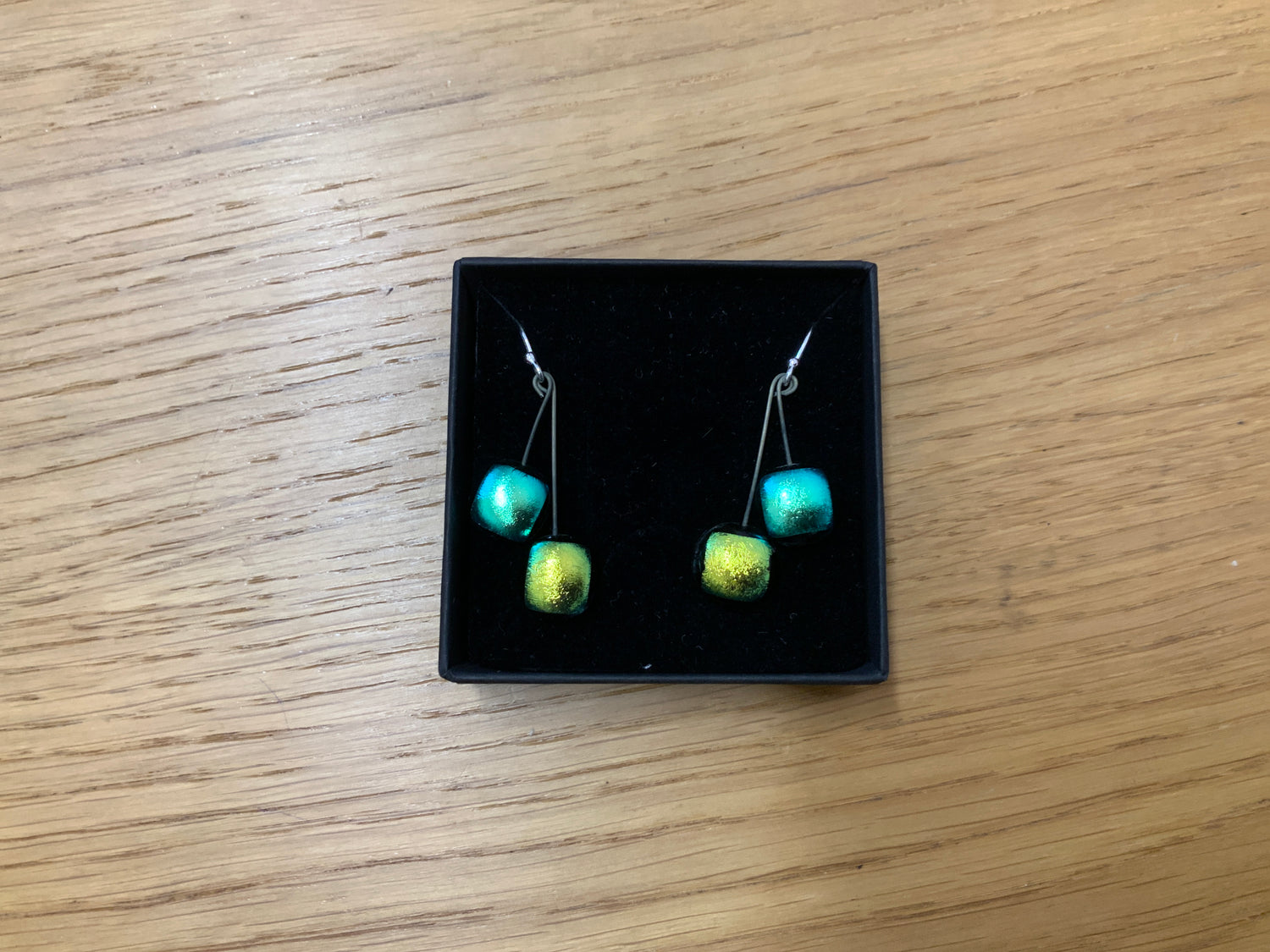 Small Square Duo Drop Dichroic Earrings