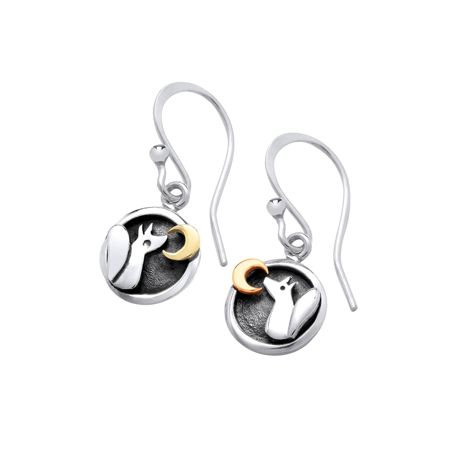 From our Enchanted Tales collection, these fox drop earrings are made from sterling silver and feature a 9ct yellow gold moon. Our cute fox sits neatly on a round frame with an oxidised background. Designed and handcrafted in Scotland by Linda Macdonald Jewellery with inspiration from romance and nature.