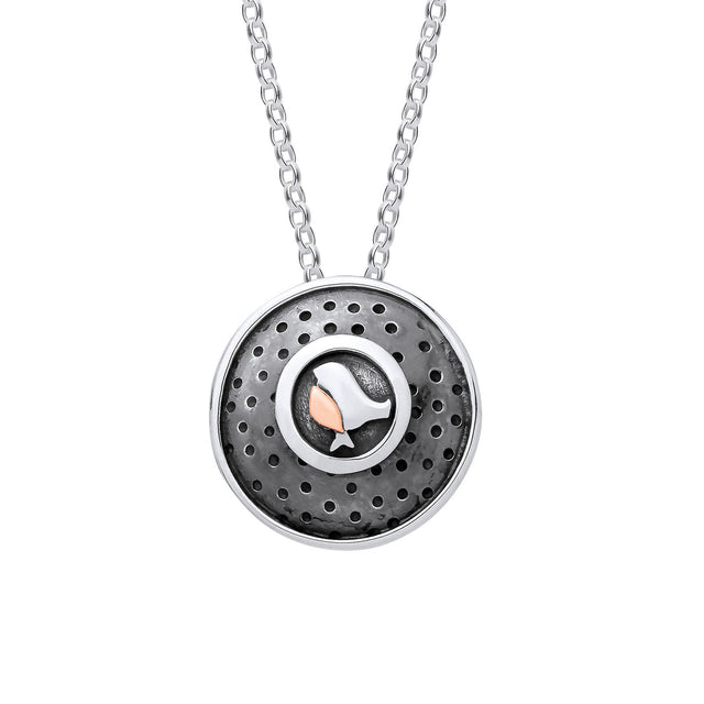 From our Enchanted Tales collection, this larger robin necklace is made from sterling silver and features a 9ct rose gold tummy. Our cute robin sits neatly in a round frame with an oxidised background that is slightlty domed with spotty effect. Designed and handcrafted in Scotland by Linda Macdonald Jewellery with inspiration from romance and nature.
