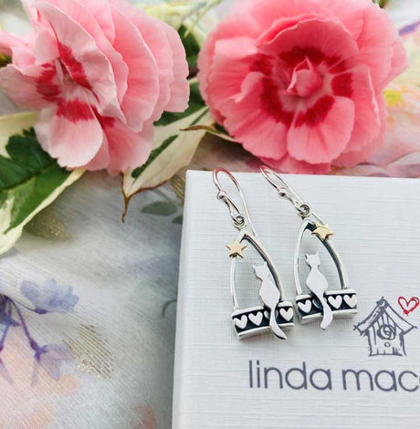 Regular price £95.00 GBPUnit price /UnavailableCat In Starlight Best Friends Drop Earrings - Silver & 9ct Gold