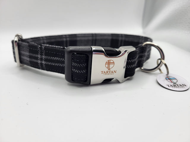 Douglas Grey Tartan Dog Collar Large Approx 45-58cm round, 25mm wide