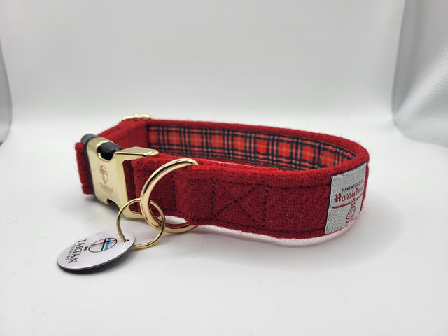 Red Harris Tweed Dog Collar Medium Approx 29-45cm round, 20mm wide is backordered and will ship as soon as it is back in stock.