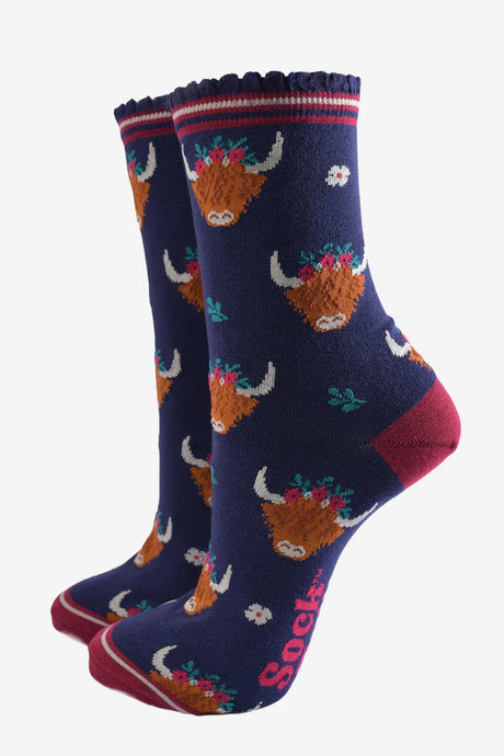 Regular price £29.95 GBPUnit price /UnavailableLadies Navy Blue Winter Highland Cow Bamboo Socks
