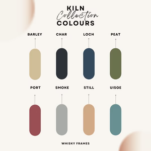 These beautiful frames are Inspired by the colours of Scotlands distilleries each frame is available with a choice of eight different backing colours. We will supply in best selling Peat from our stock, or if you would prefer another colour please add a note or message us and we will get one made up in the colour of your choice.