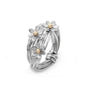 The Scribbles Ring is a bold piece of jewellery and full of character. Made in sterling silver and solid 9ct gold each ring is unique as the wires are handwoven and then the three flowers are delicately placed. Designed and made by Linda Macdonald Jewellery with inspiration from romance and nature.
